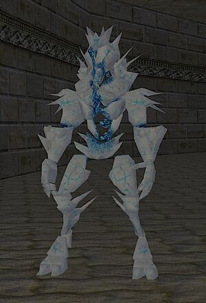 Cold Elementals are Ice-crystal based Elementals frequently encountered in dark, damp, or cold places. They can be found in great abundance on the ice-floats in Kur Mountains. If their rage peaks, they can freeze an adventurer in place.