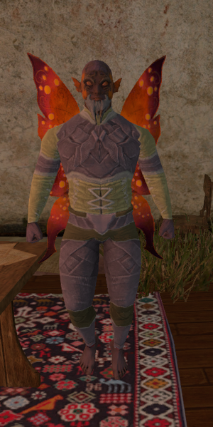 Drima is a fairy in the town of Amulna. He provides players with the ability to trade Sir Johnson Bucks for various Level 55 gear, Lockpicks, or Council Certificates.