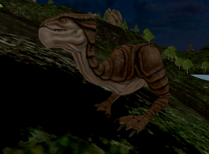 Gnasher are a species of Dinosaurs encountered at many levels, and sometimes kept as pets. Most Adventurers should be wary of them, as they are fearsome pack hunters.