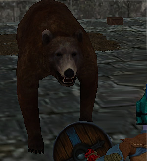 Graz is a bear who appears to be tamed by Gruzark. Both are found in the same room in Goblin Dungeon.