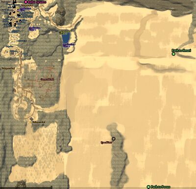 This cave in the desert contains the Eye of Hate as well as the lever to open the door in Penguin Maze in the Nightmare Caves which unlocks the ability to ping the map for your party. This cave can be entered if you have the Prop Skull Key which is obtained by taking the quest item from Spiderlaird in Elven Judgement to the statue at the Hexapus boss in Elven Judgement.